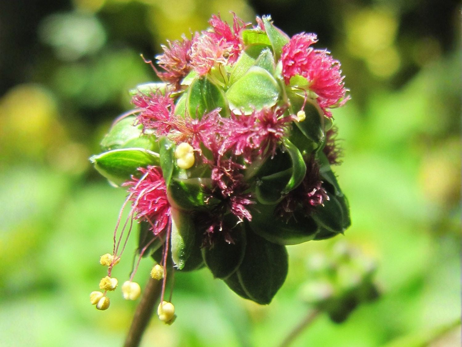 Heirloom/kulturarvsort. Hardfør og vakker plante med små sagtannete blader og blomster som samles i små, rødgrønne baller på toppen av stilk. De tynne bladene har en agurklignende smak, er vitaminrike og brukes i salater, supper, gryter, te og mer.