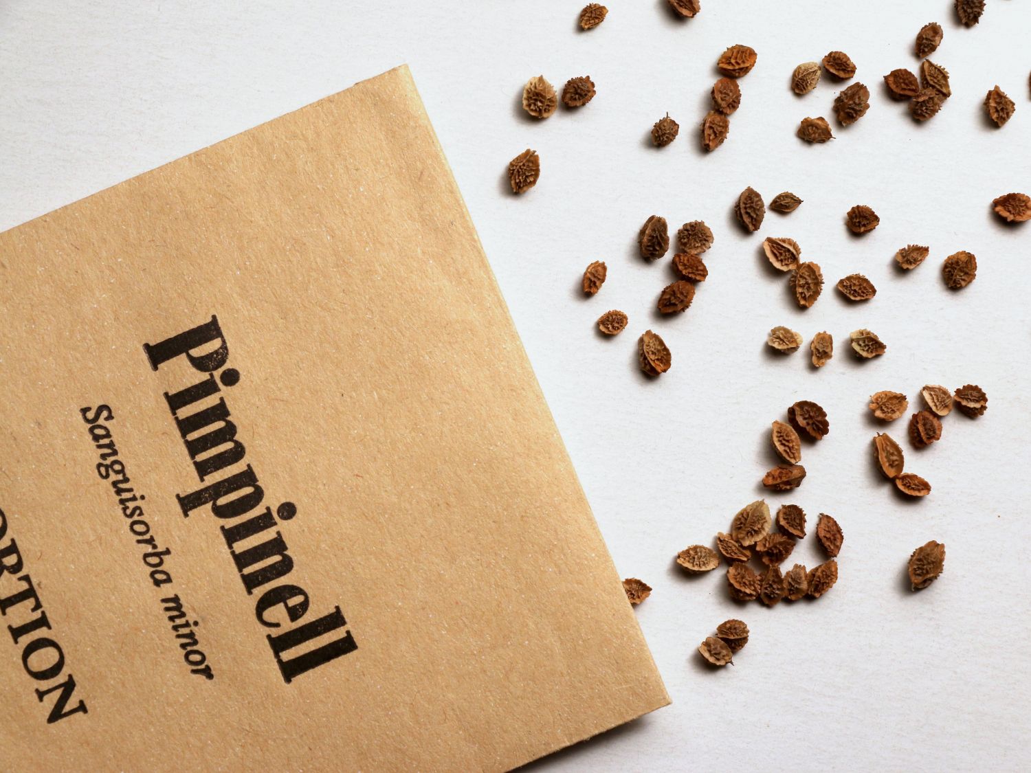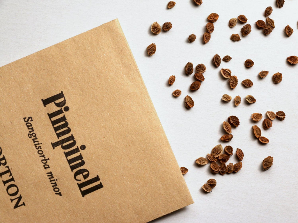 Pimpernell tilhører rosefamilien, Rosaceae, og forekommer vilt i store deler av Europa, til med i de sørligste delene av Sverige. Den er flerårig, meget herdig og vakker plante med sine små, sagtannete blader og grasiøse voksemåte. Blomstene er samlet i rødgrønne, små baller på toppen av stenglene over bladverket. Planten fortsetter å fi rikelig med nye, spede blader rundt blomsterstengelen om gamle blader klippes av.