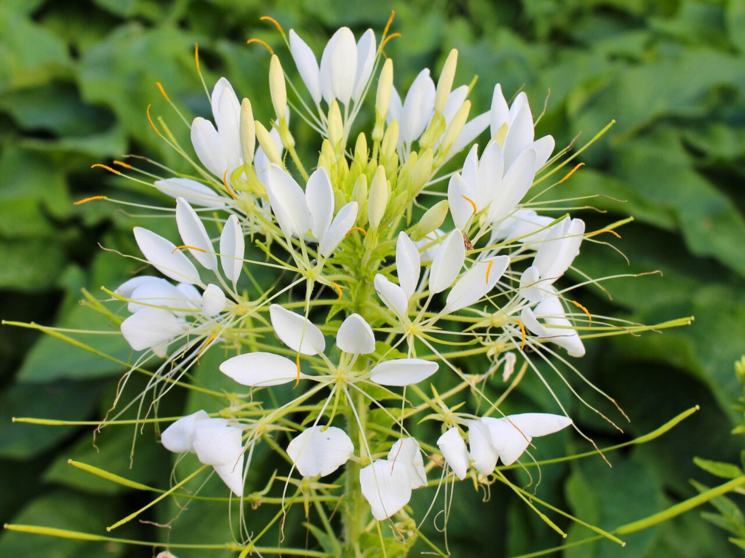 Paradisblomst med helt hvite blomster. Den er også kjent som Edderkoppblomst og paradisspinner. Den tilhører Capparaceae-familien som stammer fra Sør-Amerika. Passer godt både alene og i grupper med sin staselige og luftige grasiøse vekst. Blomstene er i store, elegant spredte klynger.