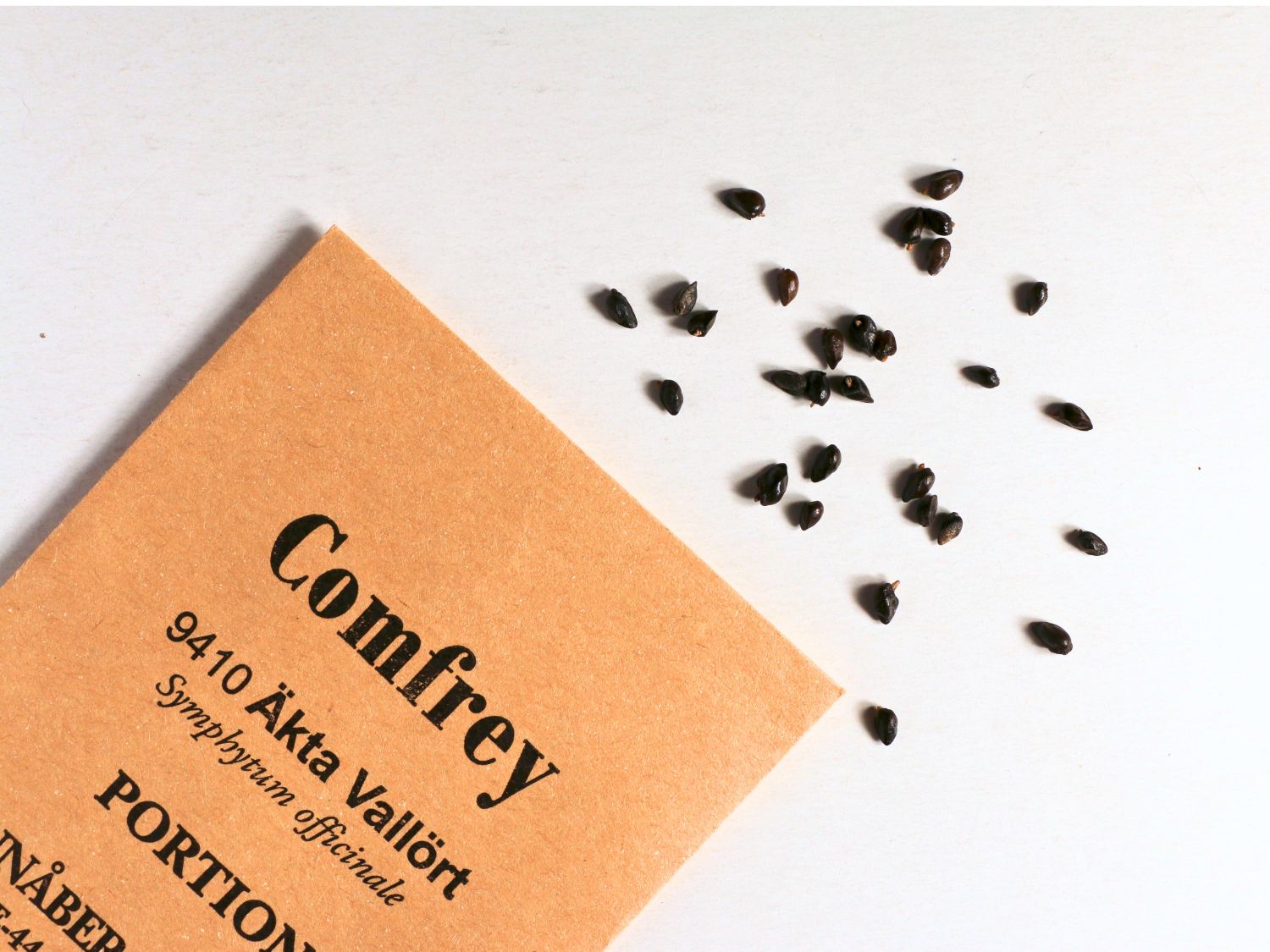 Klipp ned bladene gjennom sesongen og bruk som dekke- eller kompostmateriale, eller grav og bland ned i jorden. Planten kan også få stå og visne ned på høsten. Begge metodene frigjør næring til jorden