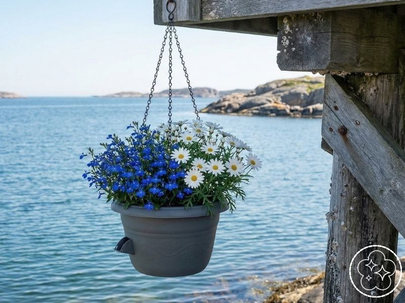 Jeg kjøpte selvvanning til amplene mine i år fordi inngangspartiet er under tak. På varme dager måtte jeg ellers vannet to ganger for dagen for at plantene mine ikke skulle dø. Jeg er strålende fornøyd