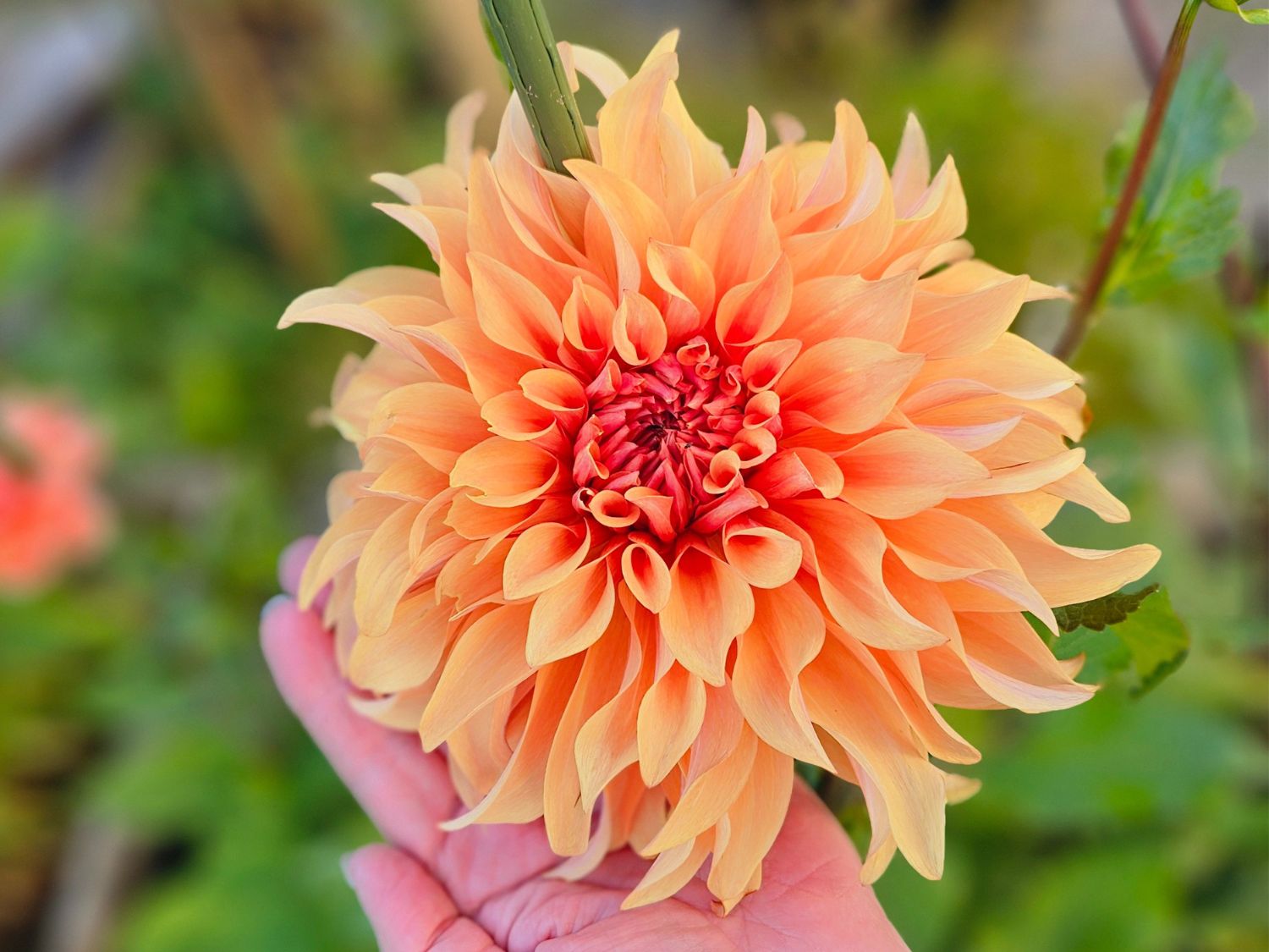 Great Hercules får opptil 25 cm store blomster i oransje, med hint av aprikos og rosa. Planten blir ca 100 cm. Flott bakerst i bed, eller til snitt.