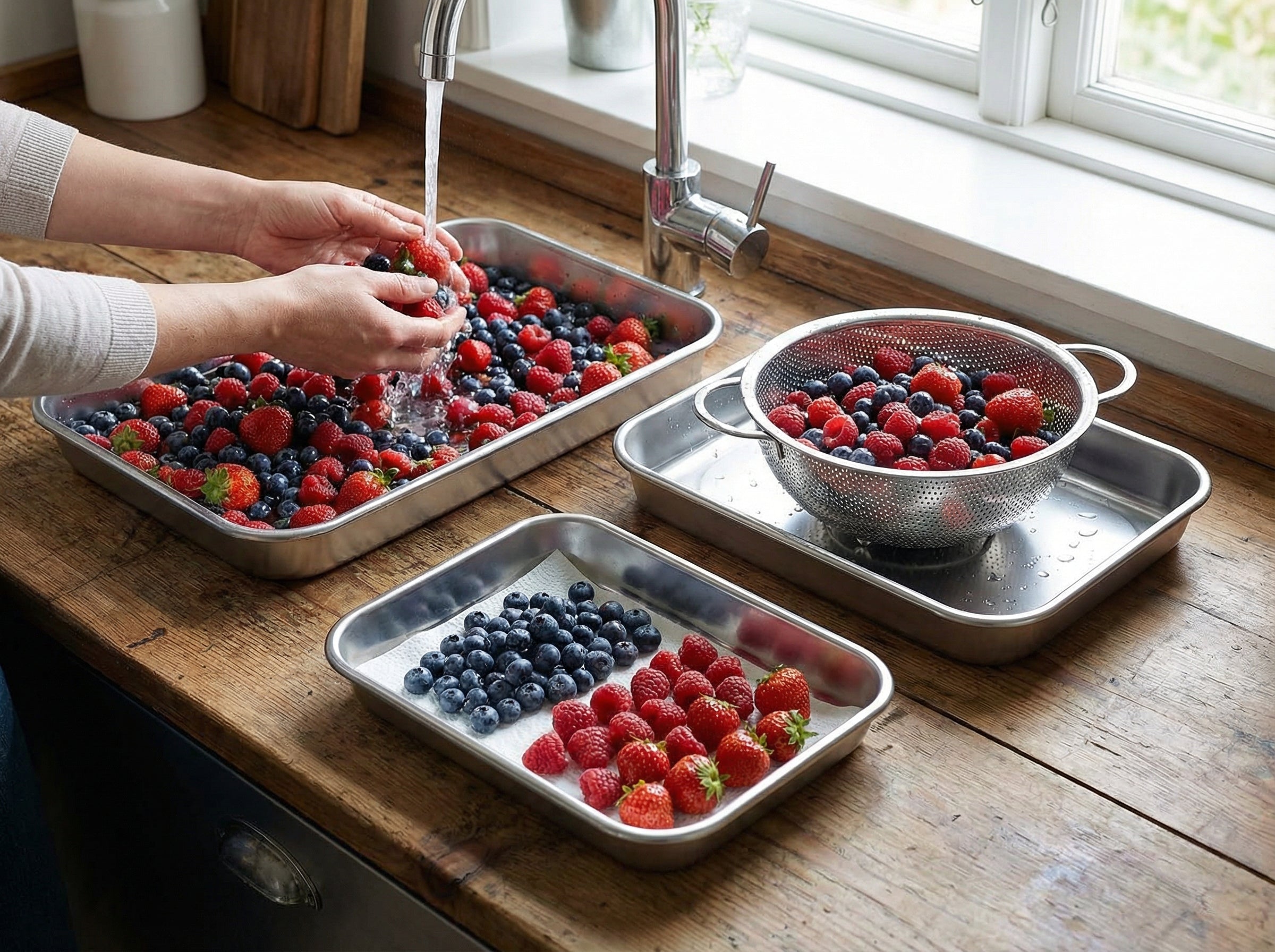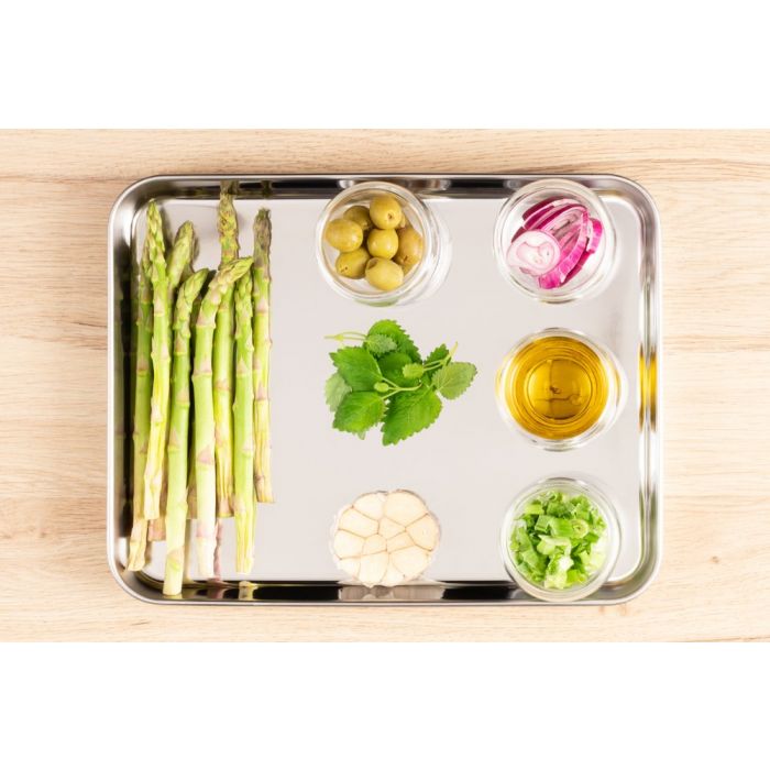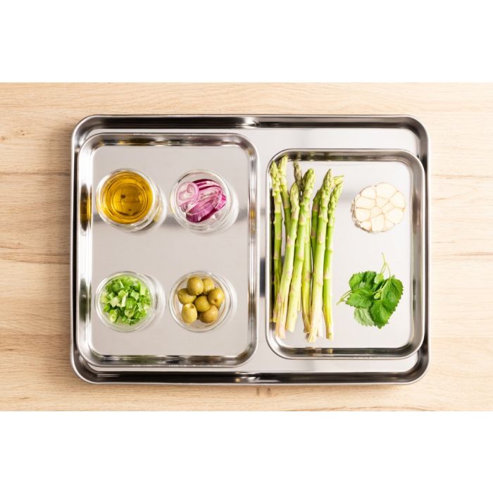 Gastro brett i rustfritt stål, perfekt til såing, matlaging og servering.