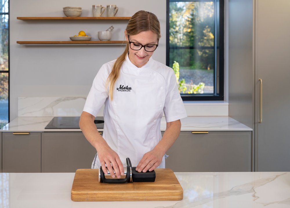 Denne roterende knivsliperen fra Maku er effektiv, rask og enkel i bruk. Den er egnet for alle typer kniver, uavhengig av hardhet i metallet.