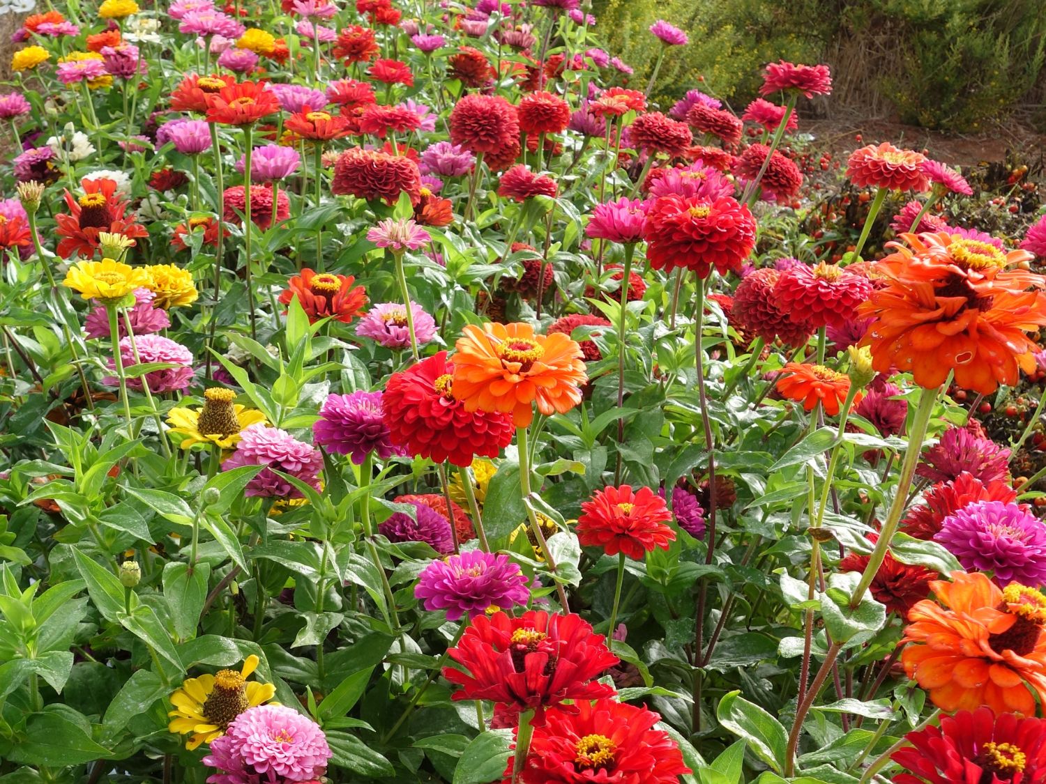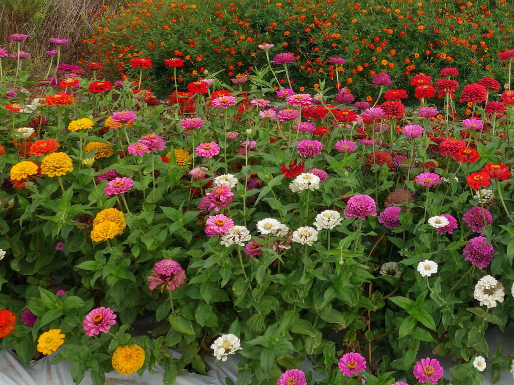 Dahliaflora er en storblomstret Zinnia med halvfylte blomster i blandede farger; rødt, rosa, oransje, gult og hvitt. Den passer utmerket som snittblomst.
