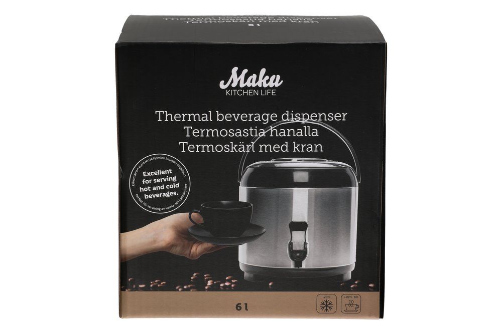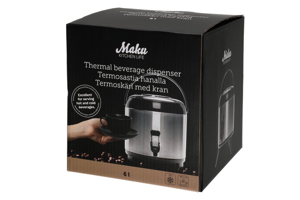 Termodispenseren holder drikken varm eller kald i opptil åtte timer. Termodispenseren er utstyrt med en kran for enkel bruk. Et praktisk og rimelig valg for turer, arrangementer, leirer og lignende for å holde drikken kald eller varm.