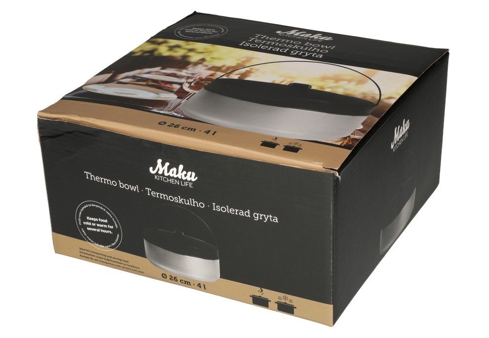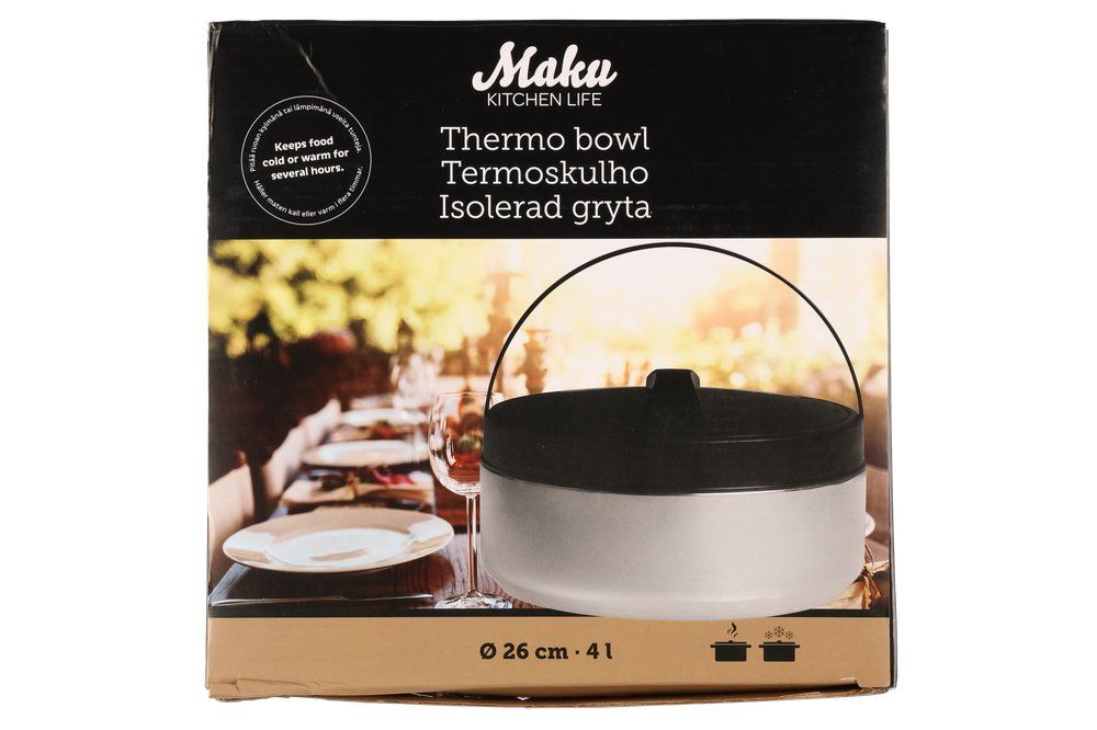 Termokjelen holder maten varm eller kald i flere timer. Den er perfekt til å transportere eller servere mat fra.