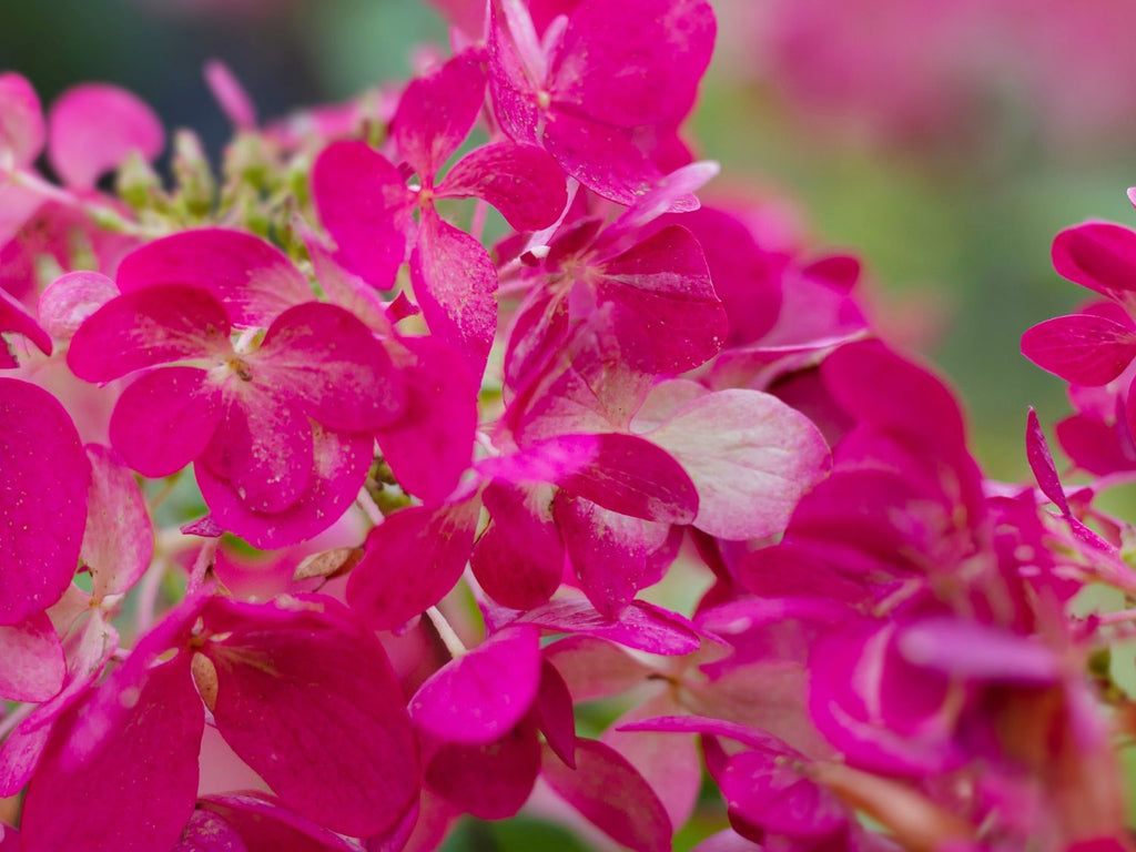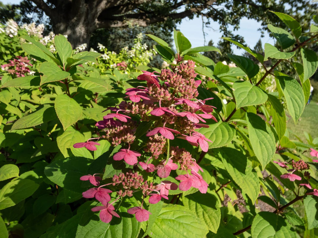 Flott syrinhortensia med blomster som starter i hvitt, og etter hvert over i dyprosa og rød, perfekt både til snitt, tørking, som frittstående eller hekk. Lang blomstring og elsket av insekter!